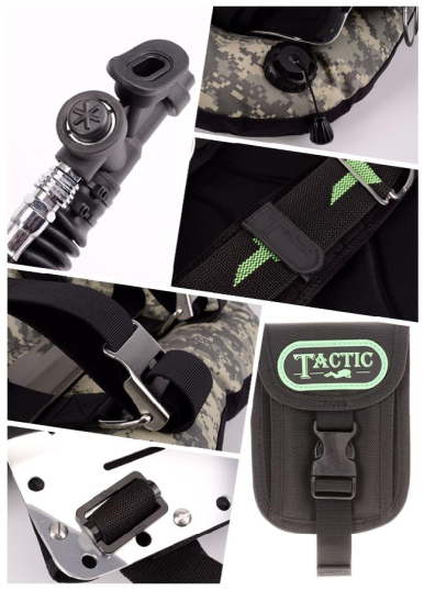 Tactic 成套产品包括了背板(钢板、 铝板) 、 背垫、 肩垫、 气瓶架、 背带及配重袋, 有快